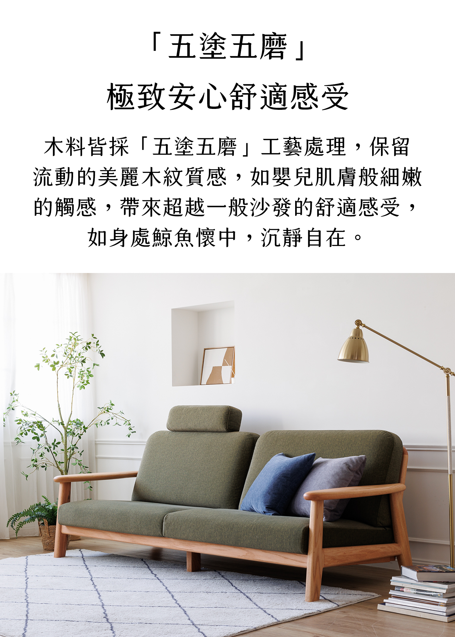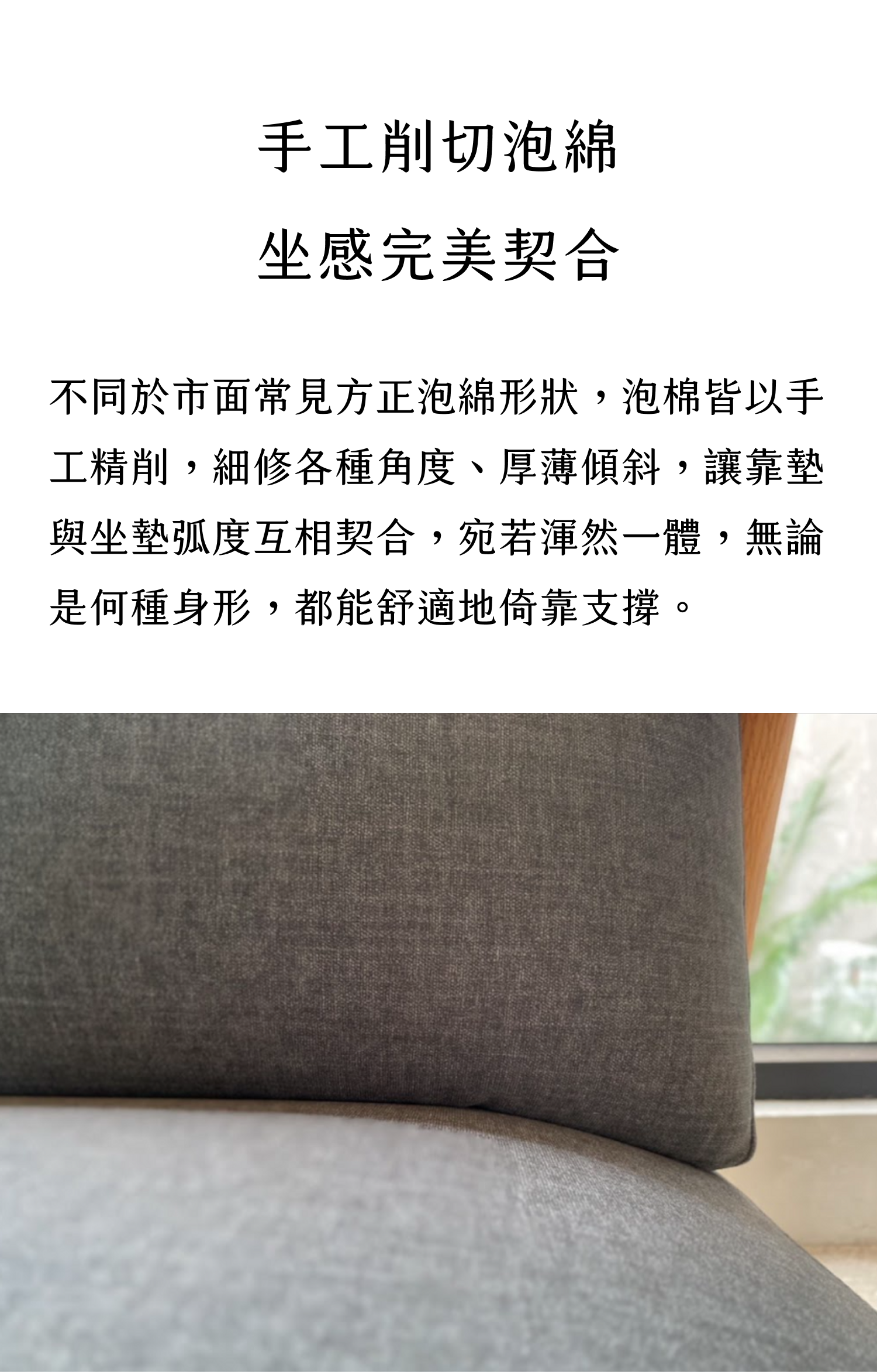 「潺潺沙發」的設計理念以「海之形」為主軸,精工雕琢將海的流動化為沙發,全原木體皆為倒角設計,坐墊泡棉亦皆以手工精削,形成坐墊、靠墊、支撐版、骨架緊密契合,渾然一體的倚靠感!如海一般,可隨不同的身形流動,無論長幼、躺臥,都能安逸舒適,無拘無束。