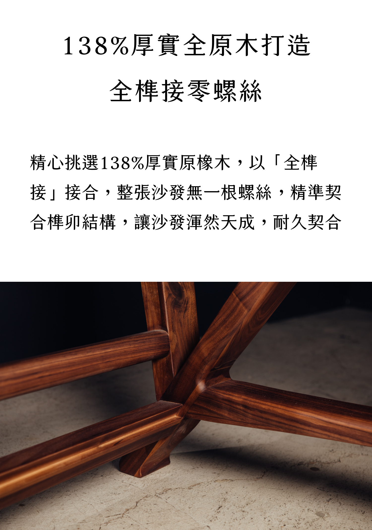 138%厚實全原木打造|全榫接零螺絲