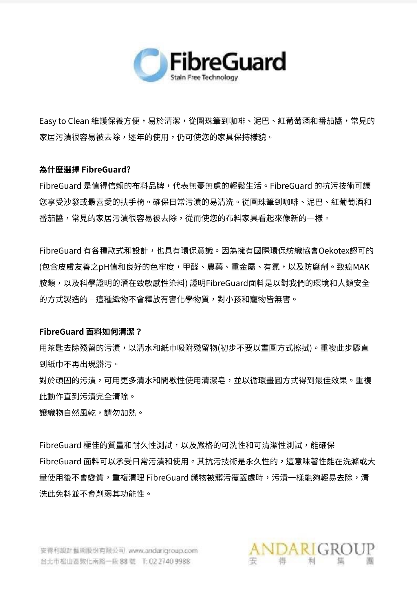 台灣製造高機能抗污面料,通過三大測試